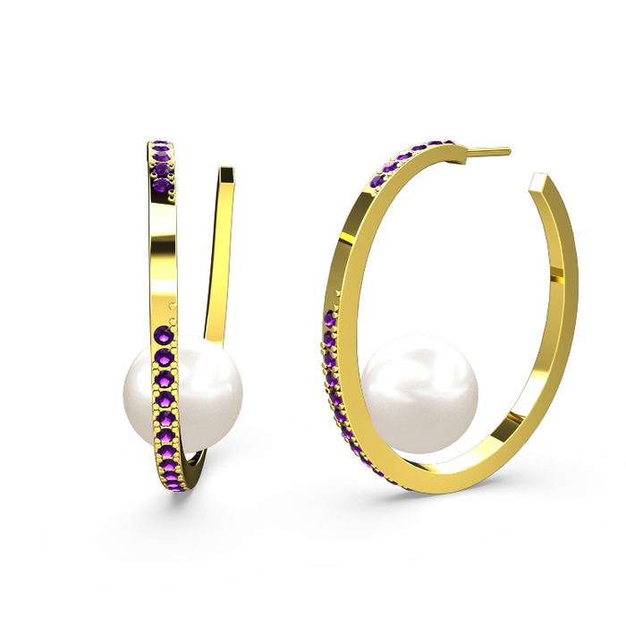 Inci ve ametist 14 ayar altın küpe