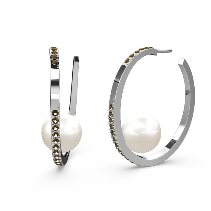 Inci ve dumanlı kuvars 18 ayar beyaz altın küpe