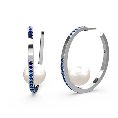 Inci ve lab safir 18 ayar beyaz altın küpe