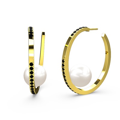 Inci ve siyah zirkon 14 ayar altın küpe