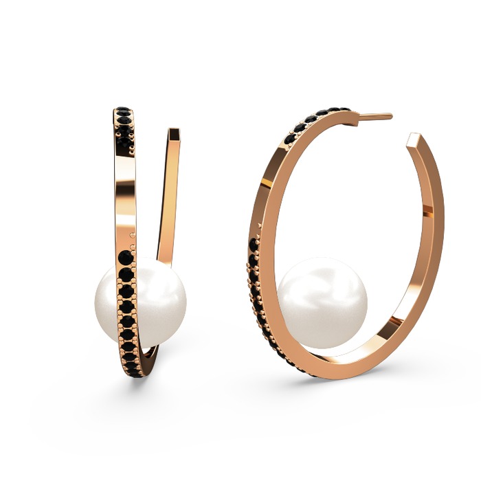 Inci ve siyah zirkon 14 ayar rose altın küpe