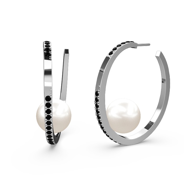 Inci ve siyah zirkon 8 ayar beyaz altın küpe