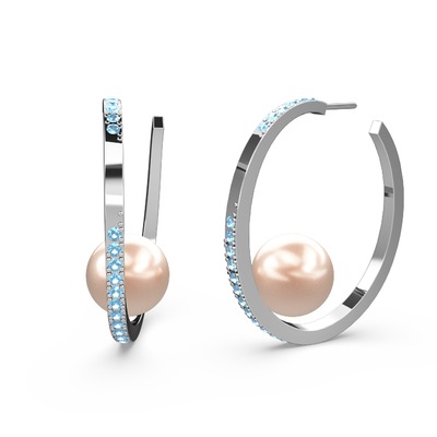 Pembe inci ve akuamarin 8 ayar beyaz altın küpe