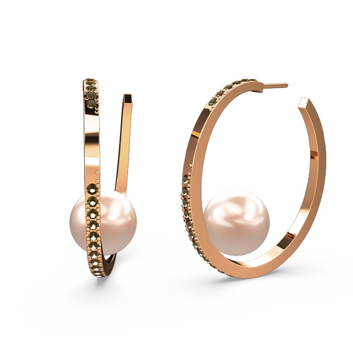 Pembe inci ve dumanlı kuvars 8 ayar rose altın küpe