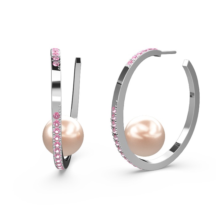 Pembe inci ve pembe kuvars 18 ayar beyaz altın küpe
