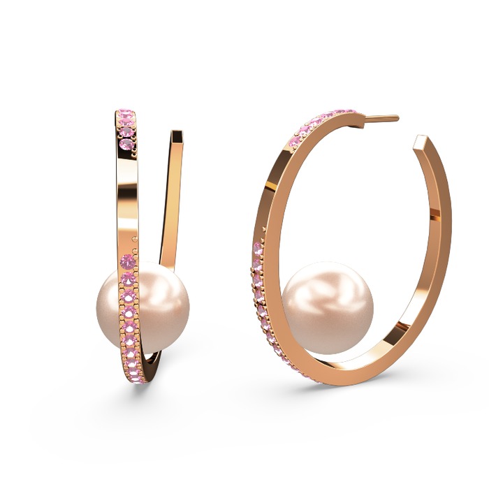 Pembe inci ve pembe kuvars 925 ayar rose altın kaplama gümüş küpe