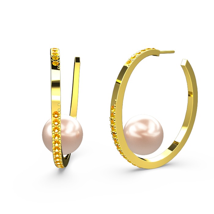 Pembe inci ve sitrin 14 ayar altın küpe