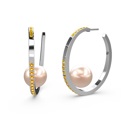 Pembe inci ve sitrin 18 ayar beyaz altın küpe