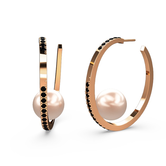 Pembe inci ve siyah zirkon 925 ayar rose altın kaplama gümüş küpe