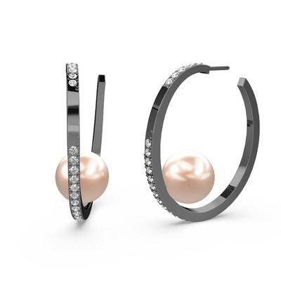 Pembe inci ve swarovski 925 ayar siyah rodyum kaplama gümüş küpe