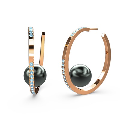 Siyah inci ve akuamarin 18 ayar rose altın küpe