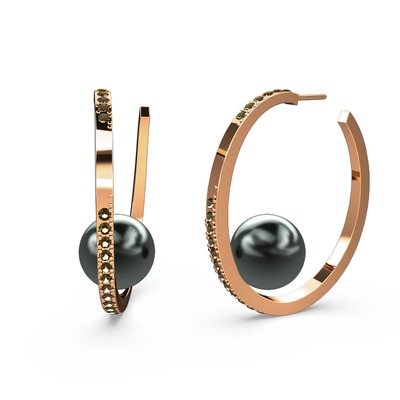 Siyah inci ve dumanlı kuvars 925 ayar rose altın kaplama gümüş küpe