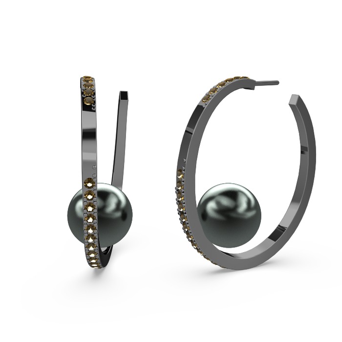 Siyah inci ve dumanlı kuvars 925 ayar siyah rodyum kaplama gümüş küpe