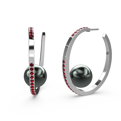 Siyah inci ve garnet 14 ayar beyaz altın küpe