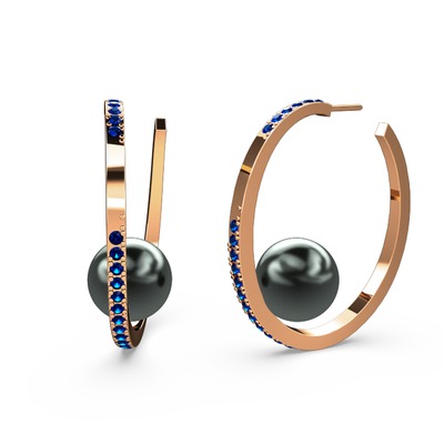 Siyah inci ve lab safir 18 ayar rose altın küpe