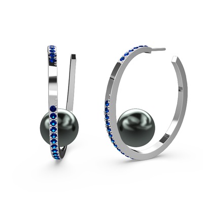Siyah inci ve lab safir 8 ayar beyaz altın küpe