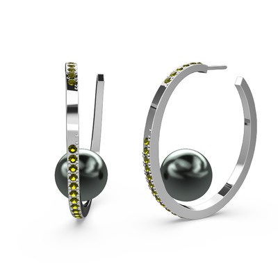 Siyah inci ve peridot 8 ayar beyaz altın küpe