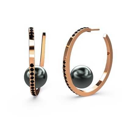 Siyah inci ve siyah zirkon 925 ayar rose altın kaplama gümüş küpe