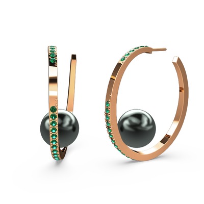 Siyah inci ve yeşil kuvars 18 ayar rose altın küpe