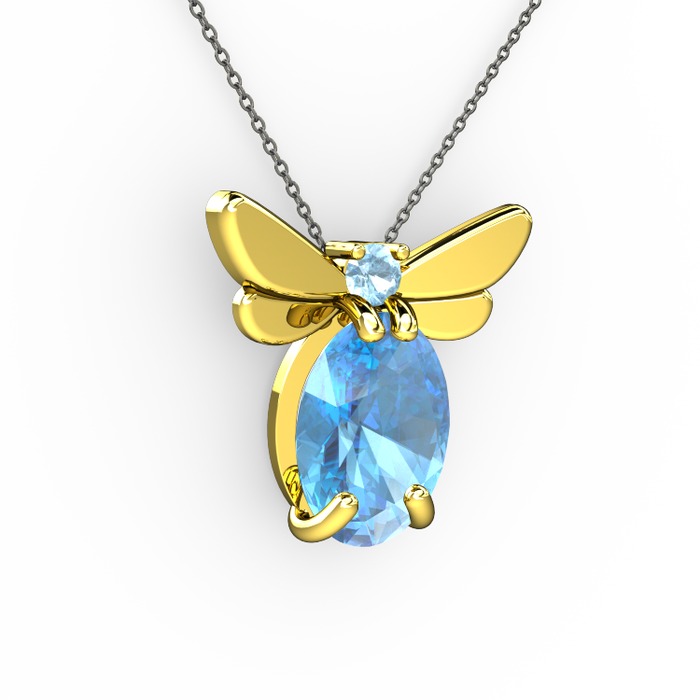 Akuamarin 14 ayar altın kolye (40 cm gümüş rolo zincir)