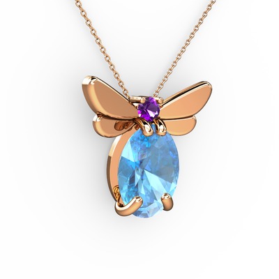 Akuamarin ve ametist 14 ayar rose altın kolye (40 cm rose altın rolo zincir)