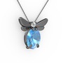 Akuamarin ve beyaz zirkon 925 ayar siyah rodyum kaplama gümüş kolye (40 cm gümüş rolo zincir)