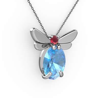 Akuamarin ve kök yakut 14 ayar beyaz altın kolye (40 cm gümüş rolo zincir)