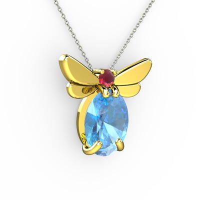 Akuamarin ve kök yakut 18 ayar altın kolye (40 cm gümüş rolo zincir)