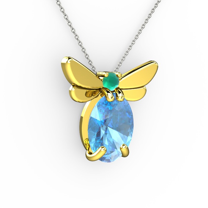 Akuamarin ve kök zümrüt 8 ayar altın kolye (40 cm gümüş rolo zincir)