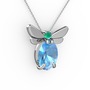 Akuamarin ve kök zümrüt 8 ayar beyaz altın kolye (40 cm beyaz altın rolo zincir)