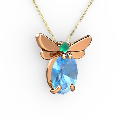 Akuamarin ve kök zümrüt 925 ayar rose altın kaplama gümüş kolye (40 cm gümüş rolo zincir)