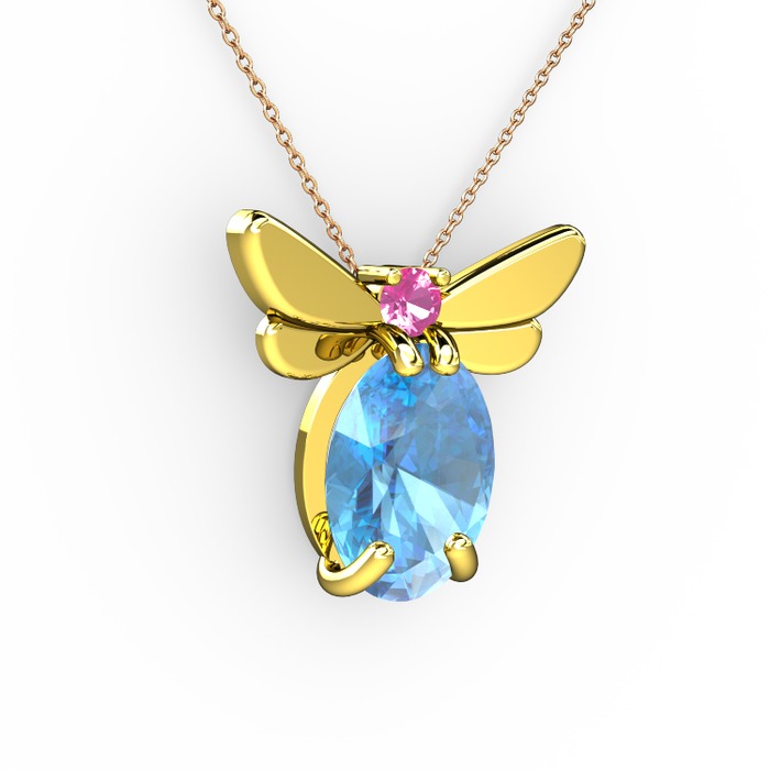 Akuamarin ve pembe kuvars 8 ayar altın kolye (40 cm rose altın rolo zincir)
