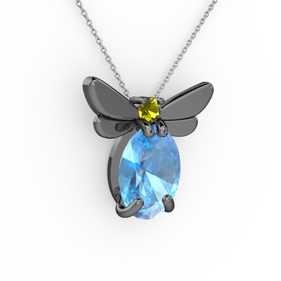 Akuamarin ve peridot 925 ayar siyah rodyum kaplama gümüş kolye (40 cm beyaz altın rolo zincir)
