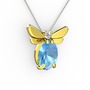 Akuamarin ve pırlanta 14 ayar altın kolye (0.24 karat, 40 cm beyaz altın rolo zincir)