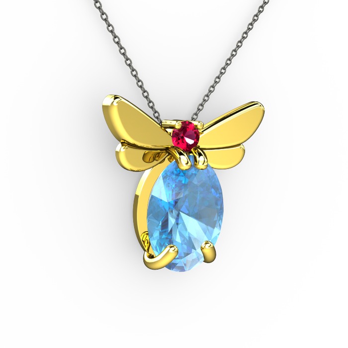 Akuamarin ve rodolit garnet 14 ayar altın kolye (40 cm gümüş rolo zincir)