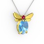 Akuamarin ve rodolit garnet 18 ayar altın kolye (40 cm beyaz altın rolo zincir)