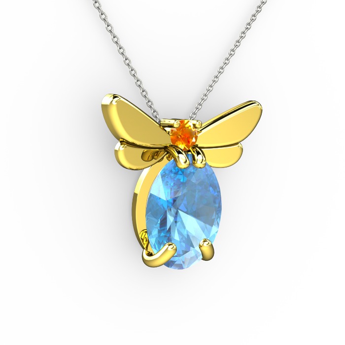 Akuamarin ve sitrin 18 ayar altın kolye (40 cm gümüş rolo zincir)