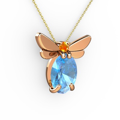 Akuamarin ve sitrin 18 ayar rose altın kolye (40 cm altın rolo zincir)