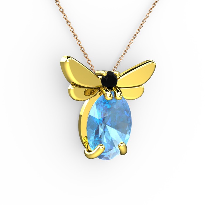 Akuamarin ve siyah zirkon 8 ayar altın kolye (40 cm rose altın rolo zincir)