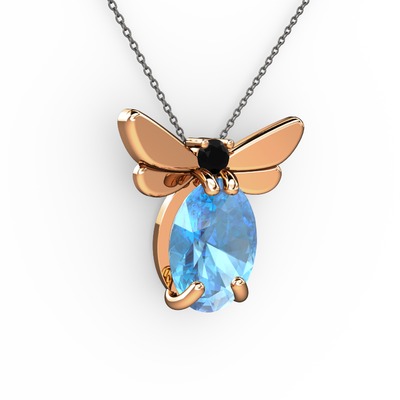 Akuamarin ve siyah zirkon 8 ayar rose altın kolye (40 cm gümüş rolo zincir)