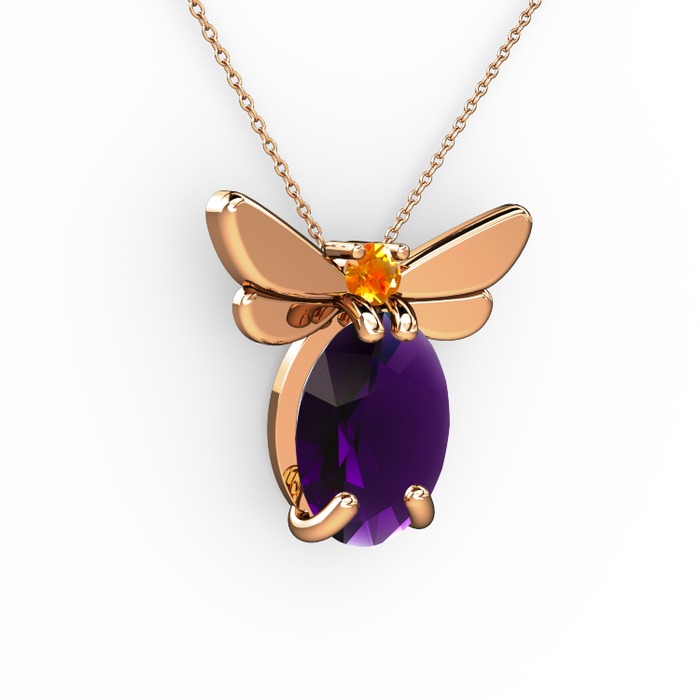 Ametist ve sitrin 8 ayar rose altın kolye (40 cm rose altın rolo zincir)