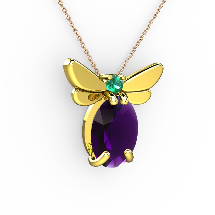 Ametist ve yeşil kuvars 18 ayar altın kolye (40 cm rose altın rolo zincir)