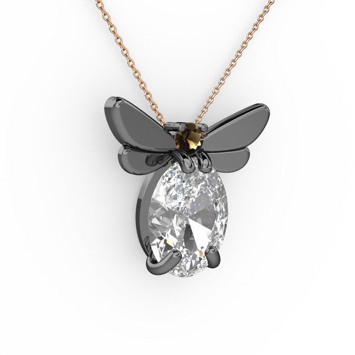 Beyaz zirkon ve dumanlı kuvars 925 ayar siyah rodyum kaplama gümüş kolye (40 cm rose altın rolo zincir)