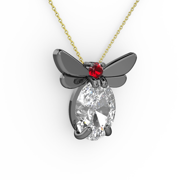 Beyaz zirkon ve garnet 925 ayar siyah rodyum kaplama gümüş kolye (40 cm altın rolo zincir)
