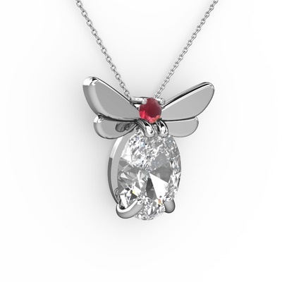 Beyaz zirkon ve kök yakut 925 ayar gümüş kolye (40 cm beyaz altın rolo zincir)