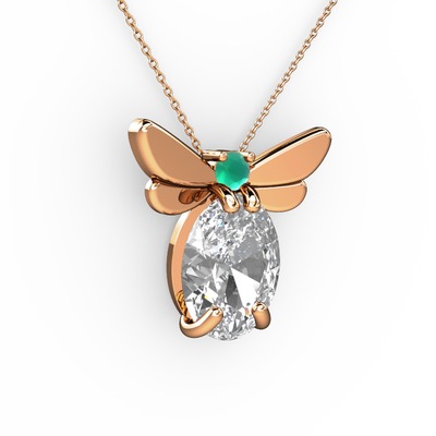 Beyaz zirkon ve kök zümrüt 18 ayar rose altın kolye (40 cm rose altın rolo zincir)