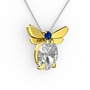 Beyaz zirkon ve lab safir 14 ayar altın kolye (40 cm beyaz altın rolo zincir)