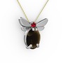 Dumanlı kuvars ve garnet 18 ayar beyaz altın kolye (40 cm altın rolo zincir)