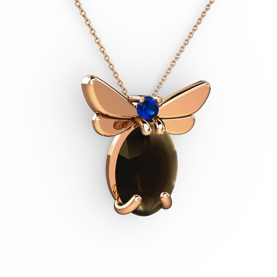 Dumanlı kuvars ve lab safir 18 ayar rose altın kolye (40 cm rose altın rolo zincir)