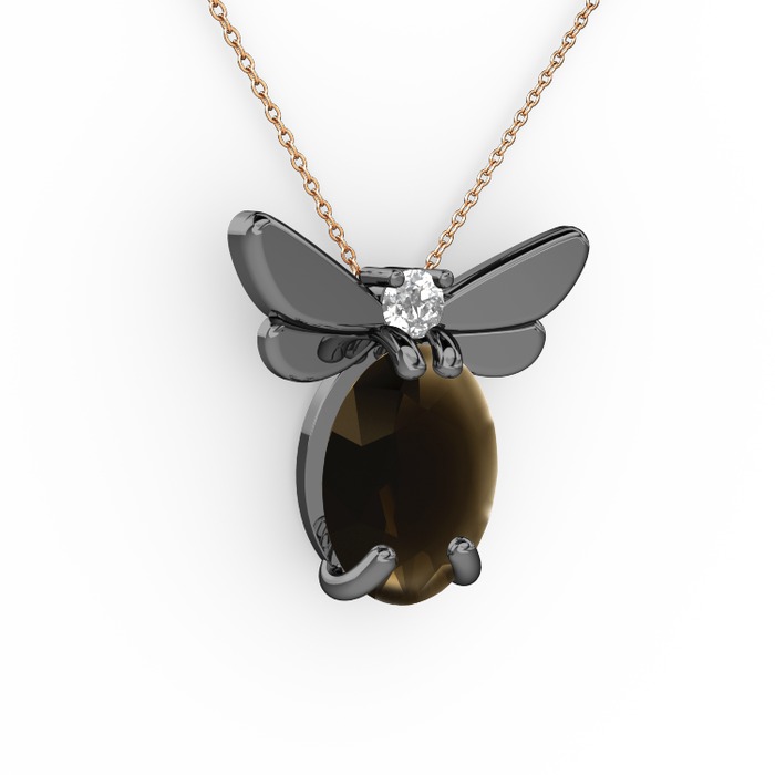 Dumanlı kuvars ve pırlanta 925 ayar siyah rodyum kaplama gümüş kolye (0.24 karat, 40 cm rose altın rolo zincir)